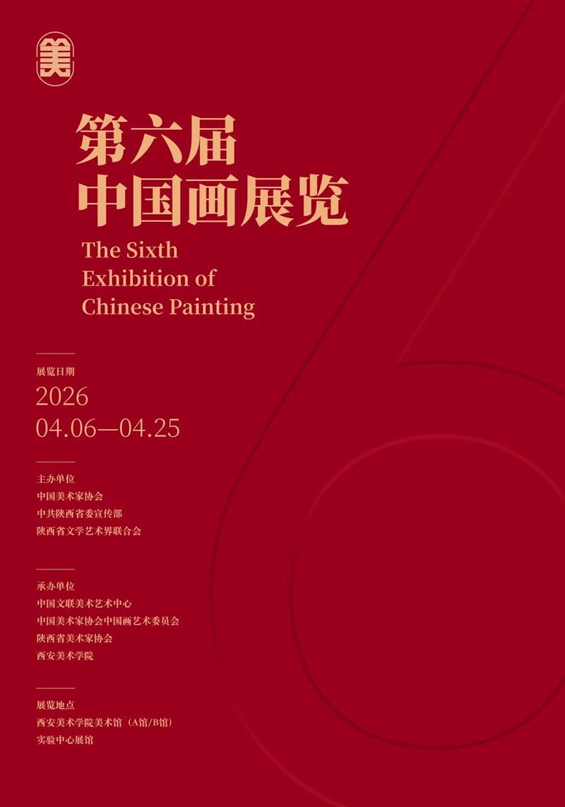 展览信息 展览时间 2026年4月6日—4月25日 展览地点 西安美术学院美术馆(雁塔校区) A馆、B馆、实验中心展厅 开幕时间 2026年4月8日上午9:00 开幕地点 西安美术学院美术馆A馆 学术研讨会时间 2026年4月7日下午14:00—17:00 研讨会地点 西安美术学院1号主教学楼二楼圆厅会议室 活动概况 第六届中国画展览,聚焦新时代中国画创作的多元探索与学术传承,集中呈现近年来中国画领域的优秀创作成果,全面展现当下中国画创作的新面貌、新探索与新思考。 展览同期举办学术研讨会,围绕“中国画的创作现状与未来发展”及“AI时代的中国画创作与教学”等主题展开深入研讨,汇聚国内知名专家学者,共同探讨中国画的传承创新路径与教学实践方向。本次西安首展后,展览将赴上海美术馆(中华艺术宫)、安徽美术馆等地巡展。 组织机构 主办单位 中国美术家协会 中共陕西省委宣传部 陕西省文学艺术界联合会 承办单位 中国文联美术艺术中心 中国美术家协会中国画艺术委员会 陕西省美术家协会 西安美术学院 交通指引 定位建议 西安美术学院(雁塔校区)东1门 观展须知 展览免费开放 欢迎广大观众前来观展 展厅内请勿触摸展品 请勿使用闪光灯拍照