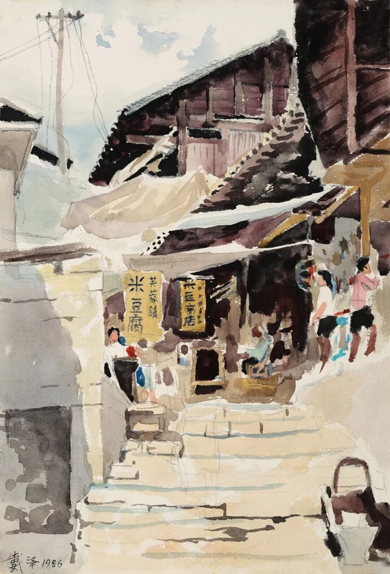 《湖南湘西芙蓉镇》,戴泽,1986年,纸本水彩,中央美术学院美术馆藏