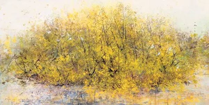 湿画法的效果好坏关键在于画纸的吸水性和画家的技巧。在适度湿润的画纸上,颜料会迅速渗入形成混色效果,使画面产生湿润、柔和、扩散和水色淋漓的特殊效果。这种技法适宜表现迷离、虚远、明暗色彩柔和、若隐若现、似真似幻的景物。