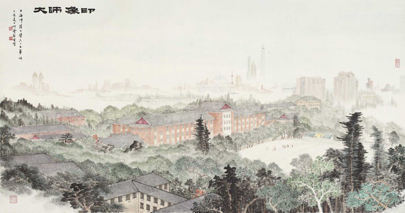 张艺蓝《印象师大》 纸本设色 145×76cm 2019年