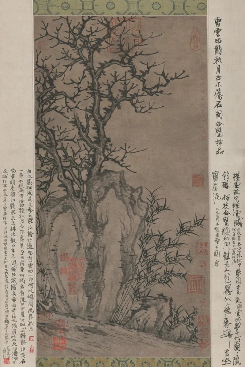 元代 颜辉、曹知白《古木筱石图》